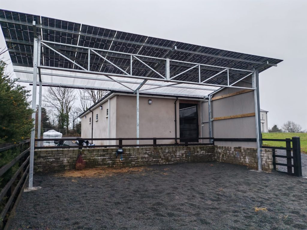 Here are some samples of the work we have completed including a 21 panel steel pergola, facing due South, with just over 8.5KWp capacity, is now covering a beautiful patio area in Co. Galway.